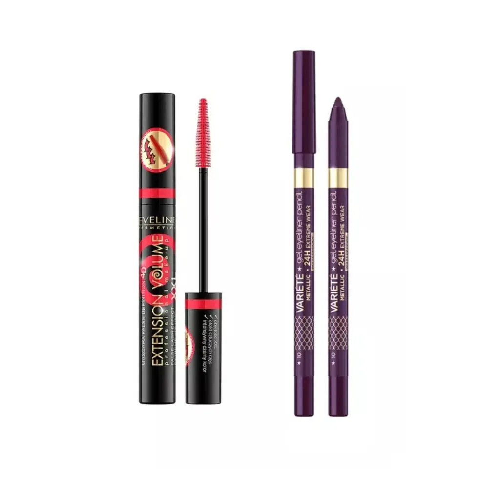 Zestaw Eveline: Tusz do rzęs Extension Volume + Żelowa kredka do oczu Variété nr 10