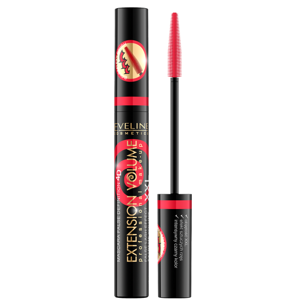 Eveline Extension Volume – tusz do rzęs, który daje efekt sztucznych rzęs bez potrzeby używania kleju. Stożkowa szczoteczka precyzyjnie rozdziela, pogrubia i podkręca każdą rzęsę, nadając spojrzeniu głębi i wyrazistości.