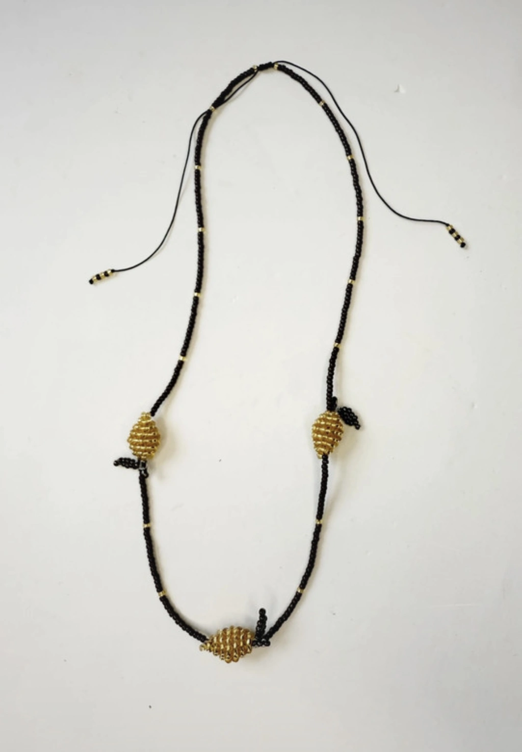 Naszyjnik na wytrzymałym sznurku jubilerskim z regulowanym zapięciem makramowym.