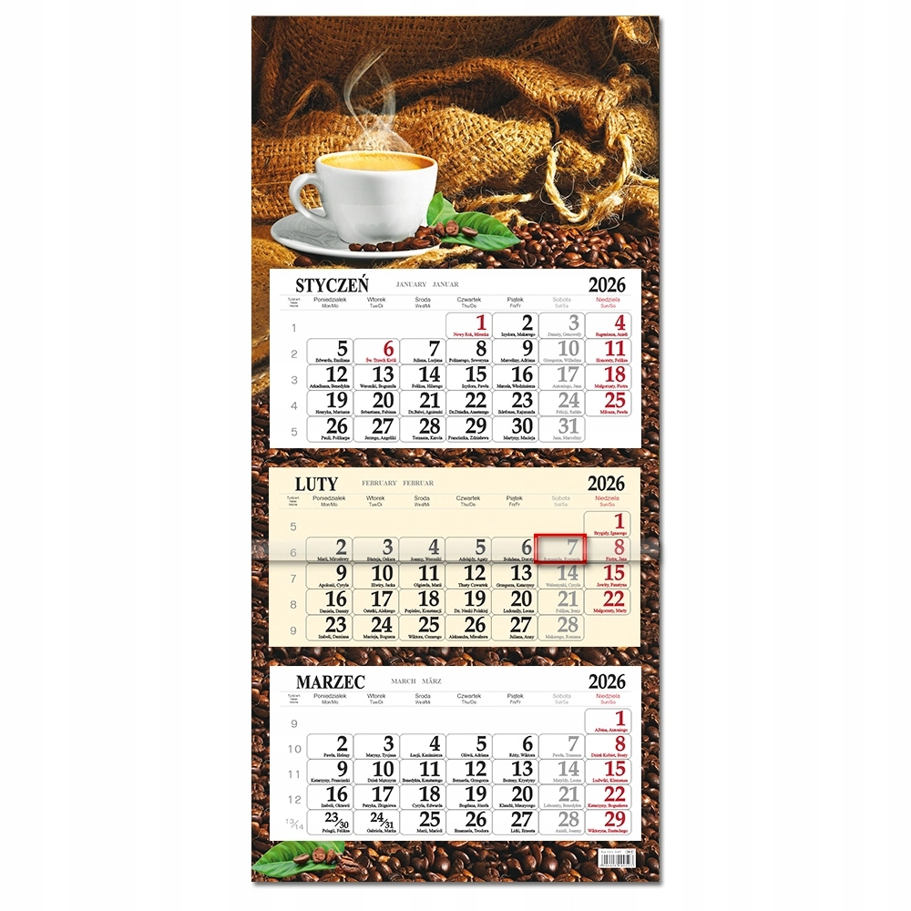 ## Kalendarz ścienny 2026 trójdzielny