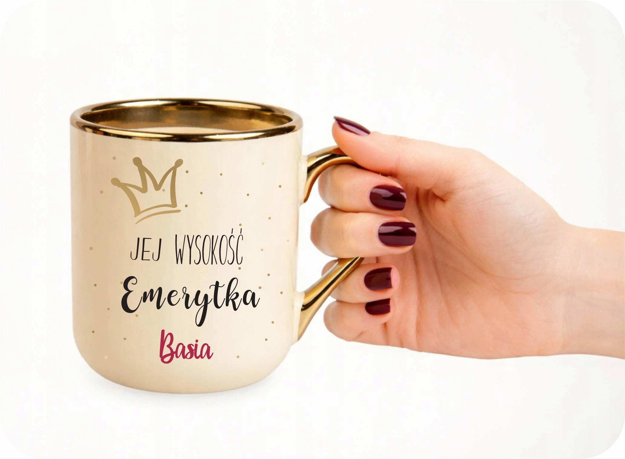**NA KUBKU UMIEŚCIMY DOWOLNE PRZESŁANE PRZEZ CIEBIE IMIĘ** Dodaj odrobinę luksusu do codziennych chwil! ☕️ Ten elegancki kubek łączy w sobie prostotę ecru z subtelnym blaskiem złota, dzięki czemu świetnie sprawdzi się zarówno w domu, jak i w biurze. ✅ **Pojemność 330 ml** – idealny na poranną kawę, aromatyczną herbatę czy gorącą czekoladę. ✅ Stylowe złote wykończenie – nadaje wyjątkowego charakteru i podkreśla elegancję. ✅ **Wymiary kubka** ceramicznego to 8 cm średnica / 9,5 cm wysokość / ok. 330 ml pojemność ✅ Wygodny uchwyt – stabilne i komfortowe trzymanie w każdej dłoni. ✅ kubek posiada **nadruk po obu stronach** **✅** kubek o gładkiej i błyszczącej powierzchni nadający elegancji ✅ **Wysoka jakość wykonania** – kubek wygląda prestiżowo i świetnie nadaje się na prezent ✅ **produkt personalizowany** – na kubku umieścimy dowolne przesłane przez Ciebie IMIĘ KOLEŻANKI lub KOLEGI ⚠️ Wskazówka: aby złote elementy zachowały swój blask, nie zaleca się mycia kubka w zmywarce **Po dokonaniu zakupu prosimy o podanie w polu ""uwagi do zakupu"" IMIENIA, jakie umieścimy na kubku :-)** **✔️** **Elegancja na co dzień** – subtelny połysk złotego ucha i rantu sprawia, że kubek prezentuje się niezwykle stylowo. Doskonały do nowoczesnych wnętrz, biur, kawiarni czy na prezent dla bliskiej osoby. **✔️ Idealna pojemność 330 ml**– ani za mały, ani za duży. W sam raz, aby delektować się ulubioną kawą latte, aromatyczną herbatą czy gorącą czekoladą w chłodne dni. **✔️ Komfort użytkowania** – ergonomiczny uchwyt pozwala na wygodne trzymanie kubka, a gładka powierzchnia zapewnia przyjemne doznania w dotyku. **✔️ Możliwość personalizacji** – na kubku umieścimy dowolne przesłane przez Ciebie imię. To świetny pomysł na prezent firmowy lub spersonalizowany upominek  **✔️ Jakość, która zachwyca** – wykonany z wysokiej jakości ceramiki, odporny na codzienne użytkowanie. Wygląda prestiżowo i długo zachowuje swój elegancki wygląd ## ✅ KUBEK ZAPAKOWANY JEST W BIAŁY KARTONIK DZIĘKI CZEMU JEST GOTOWY DO WRĘCZENIA NA PREZENT ## NAJWAŻNIEJSZE CECHY KUBKA: - ☕ Pojemność 330 ml – idealny na kawę, herbatę czy gorącą czekoladę - ✨ Stylowe złote wykończenie, gładka i błyszcząca powierzchnia - Nadruk po obu stronach - Wygodny i stabilny uchwyt - Idealny na prezent ## ✅ KUBEK POSIADA TRWAŁY I WYRAŹNY NADRUK ## ✅ KUBEK MA NADRUK Z OBU STRON ## ✨KUPUJESZ PRODUKT PERSONALIZOWANY✨ - PRZY ZAKUPIE W POLU ""UWAGI DO ZAKUPU"" PODAJ **IMIĘ**, JAKIE UMIEŚCIMY NA KUBKU
