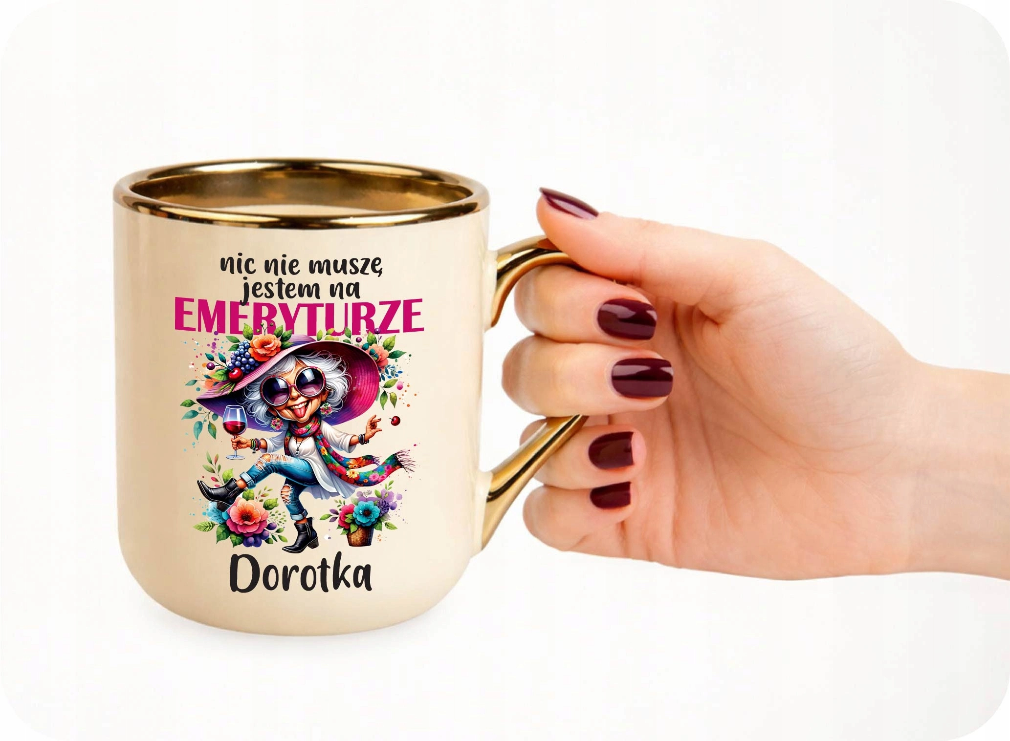 Kubek dla emerytki z imieniem – Nic nie muszę jestem na emeryturze