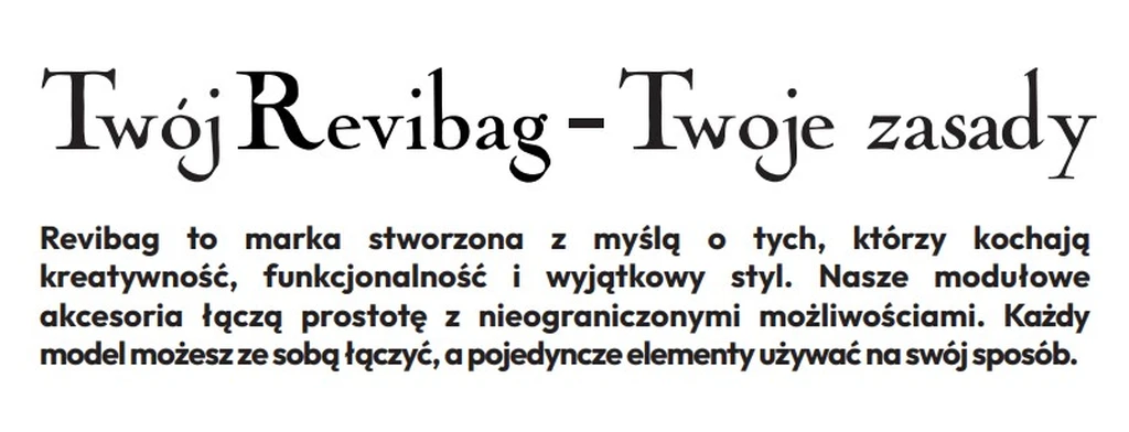Revibag to marka stworzona z myślą o tych, którzy kochają kreatywność, funkcjonalność i wyjątkowy styl. Nasze modułowe akcesoria łączą prostotę z nieograniczonymi możliwościami.